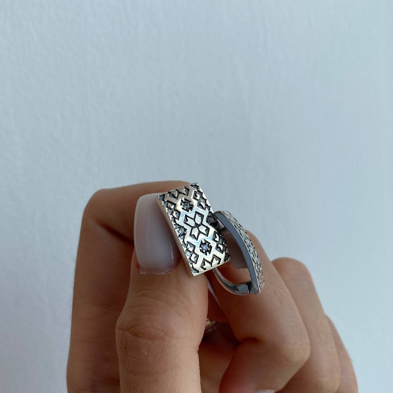 Срібні патріотичні сережки жіночі з орнаментом в українському стилі "Богом Дана" Сережки срібні