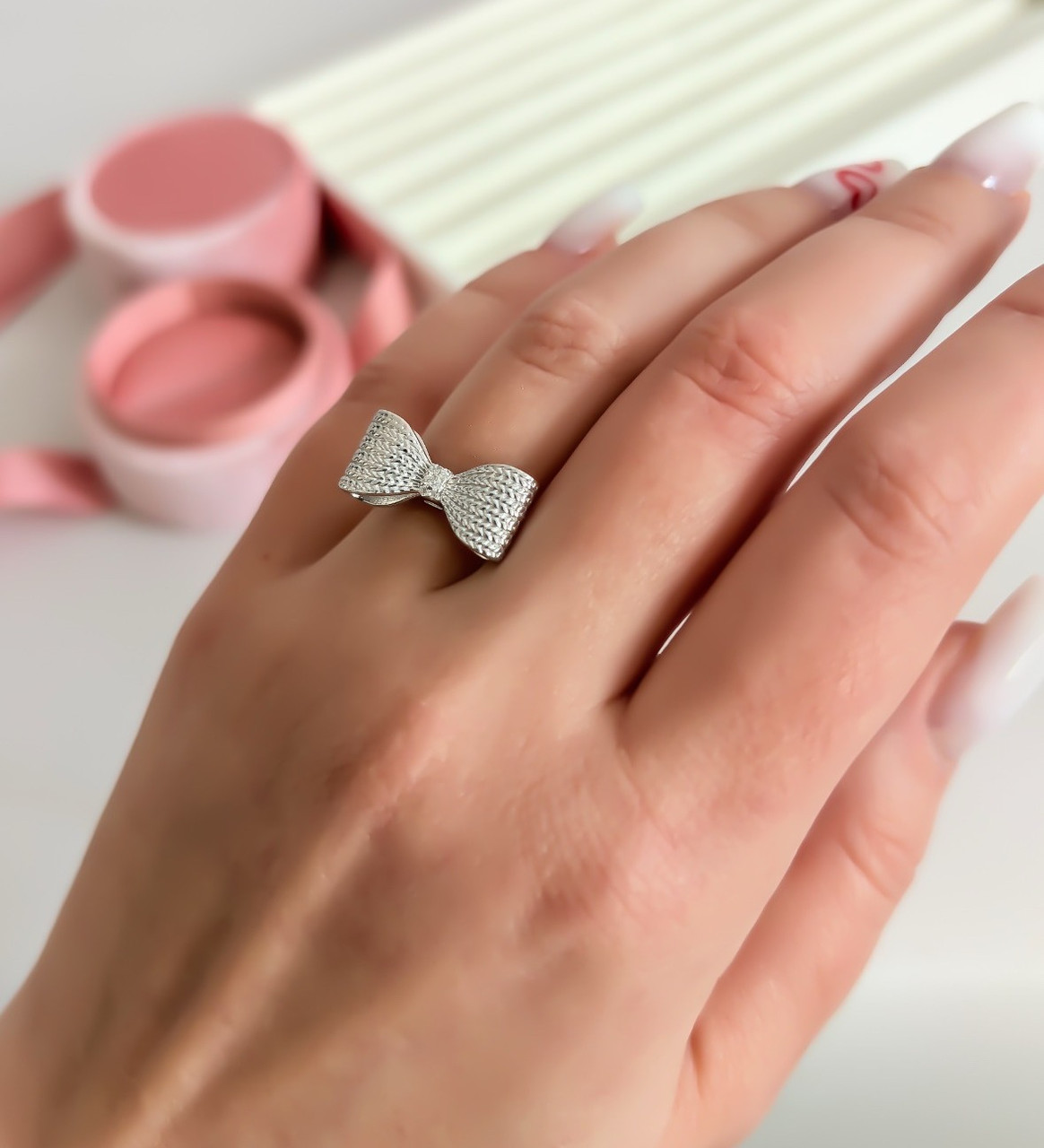 Срібна каблучка-бантик об'ємного дизайну "Міледі" - срібло 925, цирконій