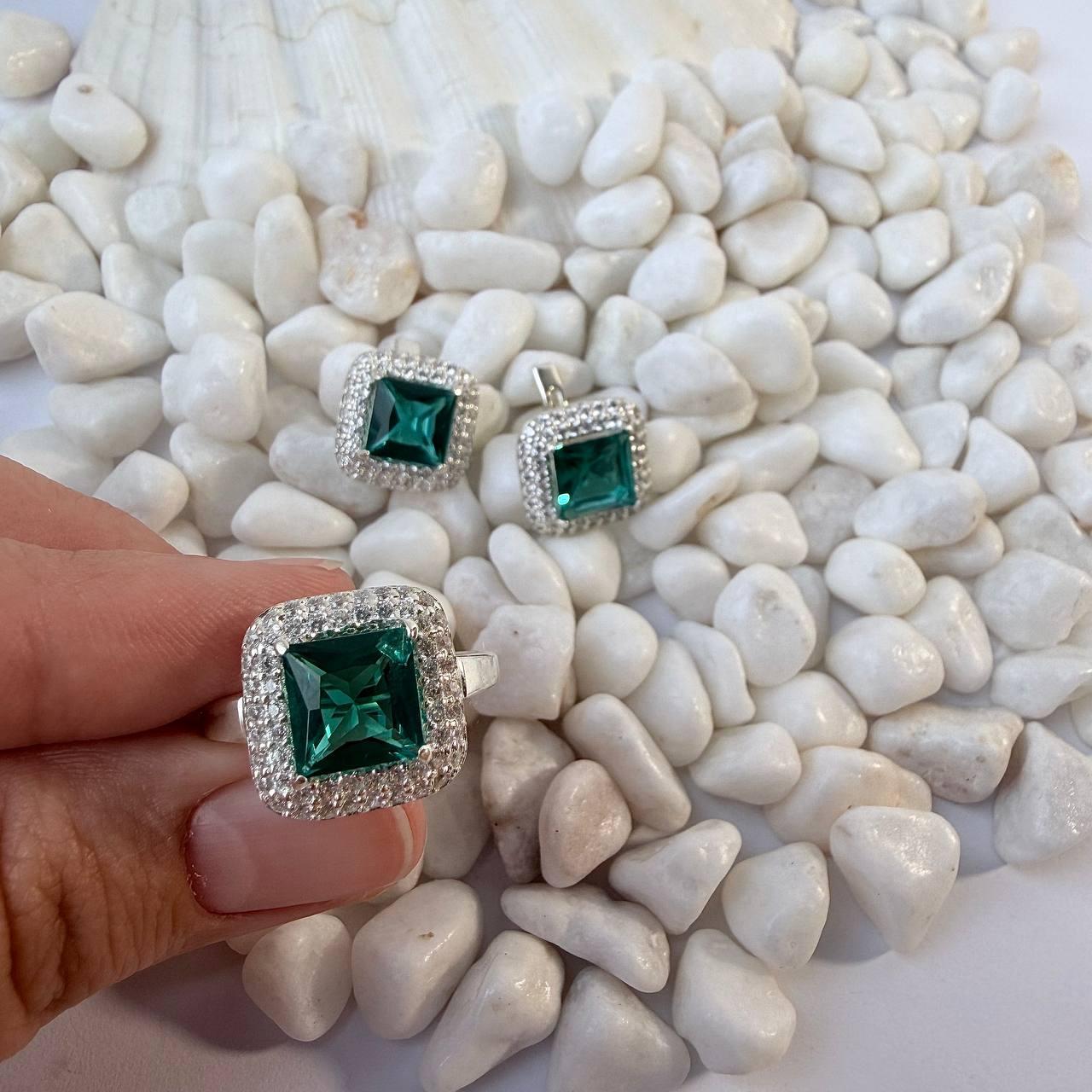 Виготовлена зі срібла 925 проби, ця каблучка привертає увагу блиском зеленого квадратного фіаніту, який гармонійно поєднується з вишуканим дизайном. Ідеальний аксесуар для щоденного носіння та особливих подій, що підкреслить ваш стиль і додасть нотку розкоші.