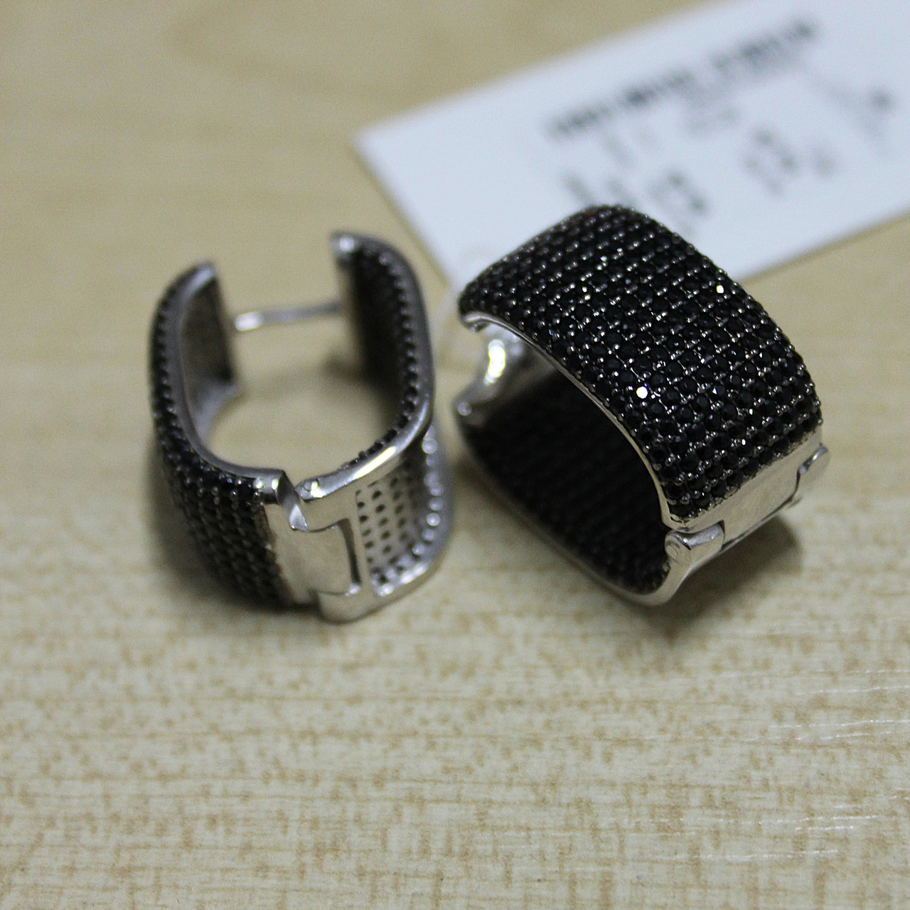 Великі срібні сережки-кліпси в усипці чорних фіанітів «Мартіна» - 925 проби