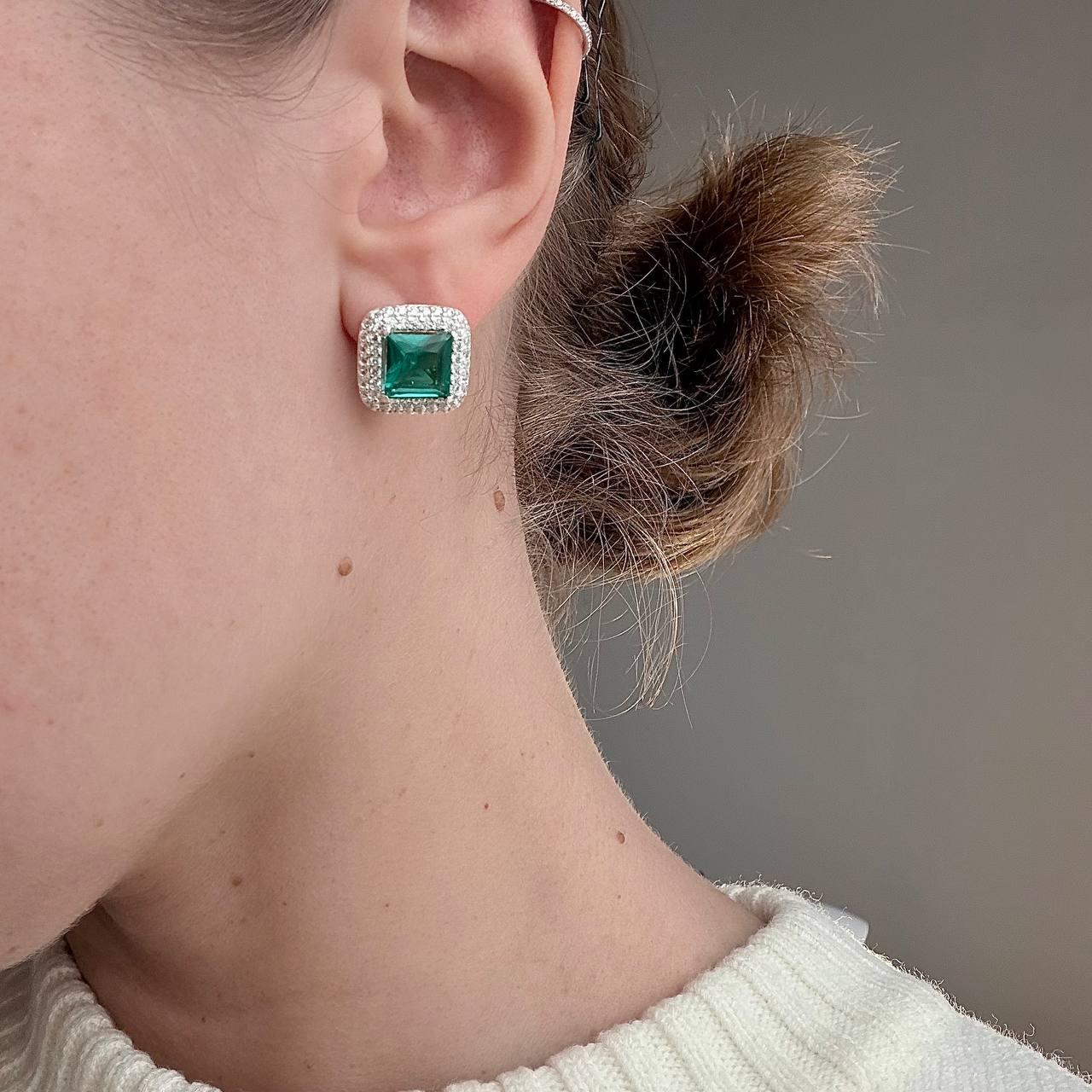 Виготовлені зі срібла 925 проби, сережки прикрашені квадратними зеленими фіанітами, які приваблюють погляд і додають витонченості. Ідеальний вибір для повсякденного носіння та святкових виходів, вони підкреслять ваш стиль і гармонію з природними відтінками.
