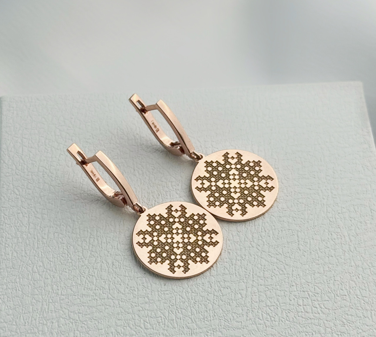 Сережки "Код Предків" — витончені срібні сережки в позолоті з орнаментом — це не просто прикраса. Унікальний візерунок створено за спеціальною системою, яка дозволяє закодувати будь-яке слово, ім’я або фразу. Ваш особистий зміст — у кожній лінії орнаменту. Гармонійна форма й тепле золоте сяйво створюють образ, у якому поєднуються традиція й сучасна естетика.