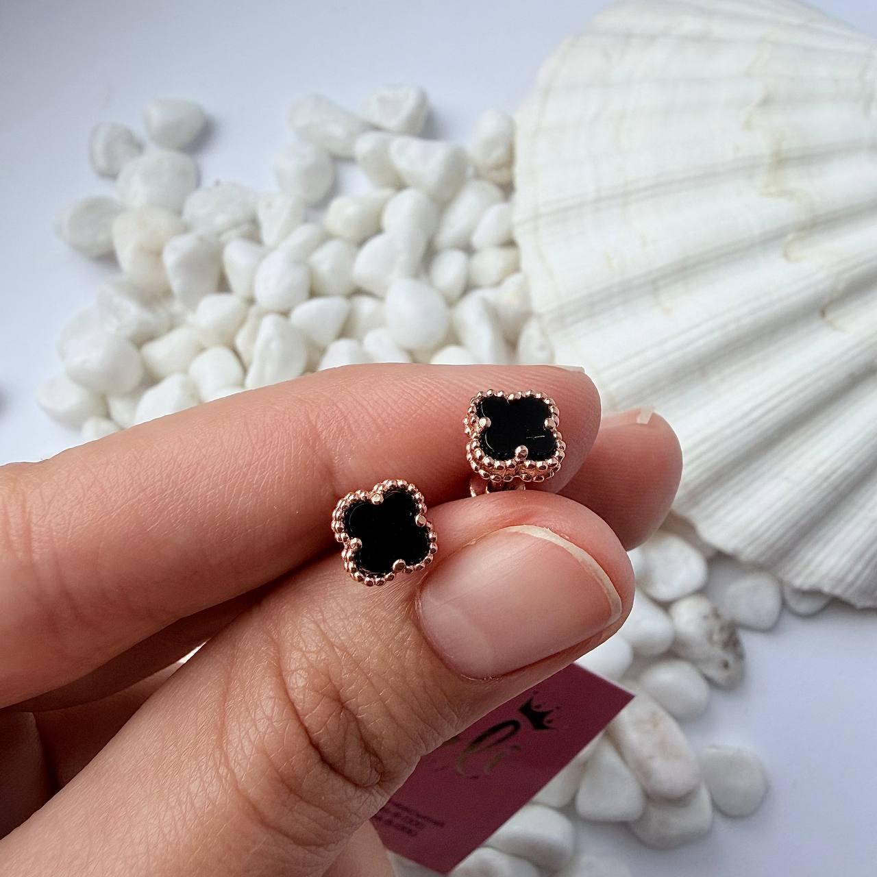 Вишукані сережки "Вогник" — символ елегантності та гарного смаку. Мініатюрна конюшина з чорним оніксом у позолоті створює вишуканий акцент, який пасує до будь-якого образу — від повсякденного до вечірнього.