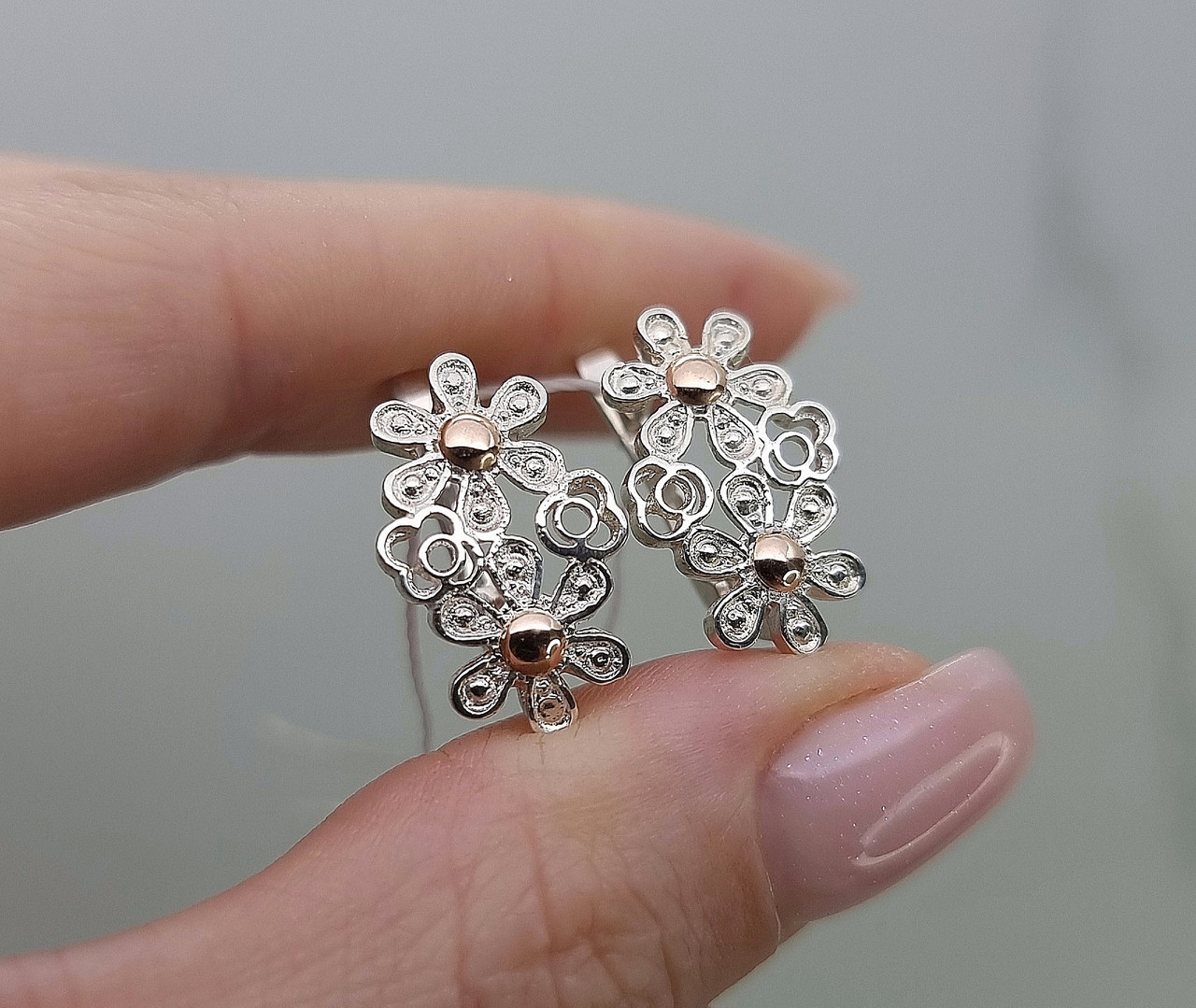 Серебряные серьги с золотом цветочной тематики Самоцвет